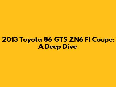 Hey guys! Let's get into the details of the 2013 Toyota 86 GTS ZN6 FI Coupe. This car isn't just a ride; it's a statement. It's all about affordable performance, sleek design, and a driving experience that keeps you hooked. Whether you're a seasoned car enthusiast or just someone who appreciates a good-looking vehicle, the 86 GTS has something to offer. We will cover its specs, performance, and overall appeal. The 2013 Toyota 86 GTS marks a pivotal moment in automotive history, bringing back the thrill of lightweight, rear-wheel-drive sports cars to the masses. Born from a collaboration between Toyota and Subaru, the 86, also known as the GT86 or Scion FR-S in some markets, embodies the spirit of classic sports cars while incorporating modern engineering and design. The GTS trim elevates the experience with enhanced features and aesthetics, making it a highly sought-after model for enthusiasts. From its responsive handling to its distinctive styling, the 86 GTS offers a unique blend of performance and practicality, appealing to a wide range of drivers. This car is more than just transportation; it's a lifestyle, a community, and a passion shared by countless individuals around the globe. The 86's success lies in its ability to connect drivers with the road, providing an engaging and visceral experience that is often missing in modern vehicles. Its affordability makes it accessible to a younger audience, fostering a new generation of car enthusiasts who appreciate the art of driving. The enduring popularity of the 2013 Toyota 86 GTS is a testament to its timeless design and performance capabilities. As we delve deeper into its specifications, performance, and overall appeal, you'll understand why this car has captured the hearts of so many. It's a vehicle that celebrates the joy of driving, reminding us that sometimes, the simplest pleasures are the most rewarding.