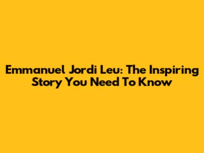 Emmanuel Jordi Leu: The Inspiring Story You Need To Know