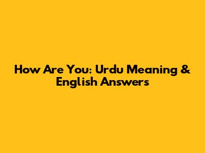 How Are You: Urdu Meaning & English Answers