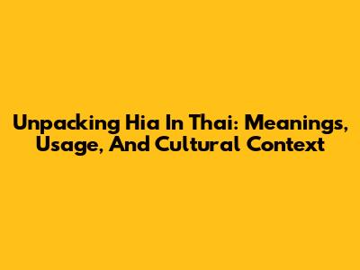 Unpacking 'Hia' In Thai: Meanings, Usage, And Cultural Context