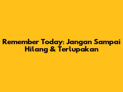 Remember Today: Jangan Sampai Hilang & Terlupakan