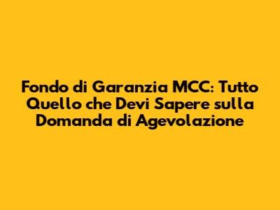 Che Cos'è il Fondo di Garanzia MCC?