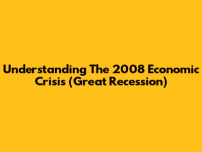 Understanding The 2008 Economic Crisis (Great Recession)