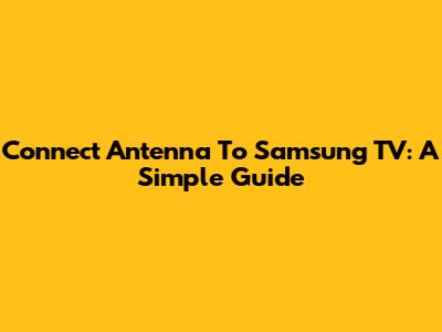 Connect Antenna To Samsung TV: A Simple Guide