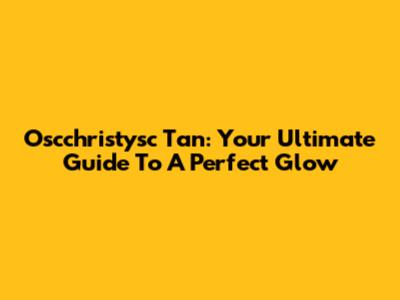 Oscchristysc Tan: Your Ultimate Guide To A Perfect Glow