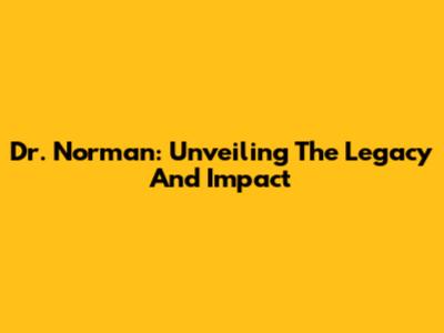 Dr. Norman: Unveiling The Legacy And Impact