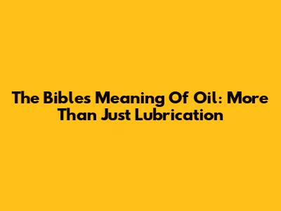 The Bible's Meaning Of Oil: More Than Just Lubrication