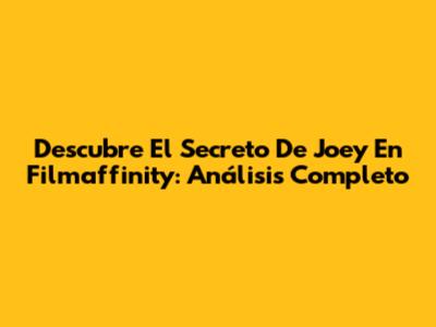 Descubre 'El Secreto De Joey' En Filmaffinity: Análisis Completo