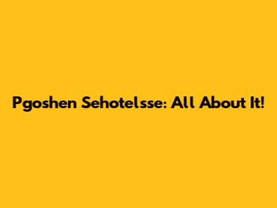 Pgoshen Sehotelsse: All About It!