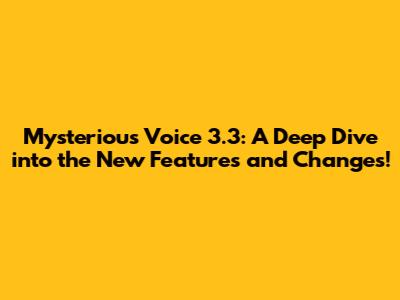 Hey guys! Ready to dive into the latest and greatest from Mysterious Voice 3.3? Buckle up, because we're about to explore all the juicy details of this exciting update. We'll be looking at the new features, the changes that have been implemented, and what this all means for you, the players. This update is packed with improvements and fresh content designed to elevate your gaming experience. Let's get started!
