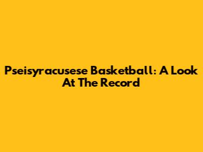 Pseisyracusese Basketball: A Look At The Record