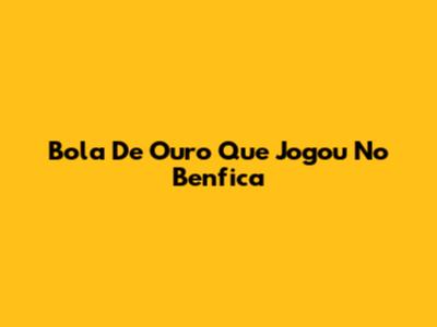 Bola De Ouro Que Jogou No Benfica