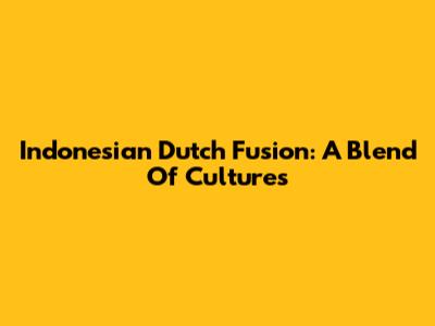 Indonesian Dutch Fusion: A Blend Of Cultures
