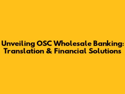 Unveiling OSC Wholesale Banking: Translation & Financial Solutions