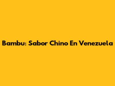 Bambu: Sabor Chino En Venezuela