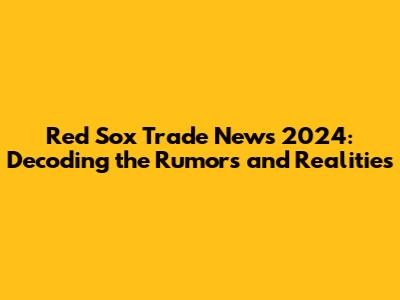 Hey baseball fanatics! Ready to dive deep into the whirlwind of the Red Sox trade news for the 2024 season? Buckle up, because the rumor mill is churning, and there's a lot to unpack. As always, the anticipation surrounding the Red Sox is palpable, and everyone's eager to see how the team will shape up for the upcoming season. We're going to break down the latest buzz, analyze potential moves, and give you the lowdown on what to expect. From pitching to the outfield, we'll cover it all, so you're totally in the know. Let's get started, shall we?