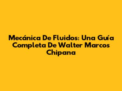 Mecánica De Fluidos: Una Guía Completa De Walter Marcos Chipana