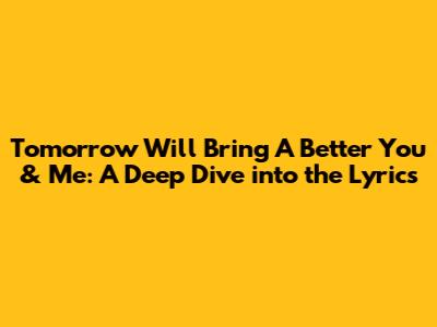 Hey guys! Ever stumbled upon a song that just hits different? A song that wraps you up in a warm hug or makes you feel like you can conquer the world? Well, today we're diving deep into the lyrics of a tune that does just that: "Tomorrow Will Bring A Better You, A Better Me." This isn't just about catchy melodies; it's about the raw, honest emotions and the universal hopes we all share. We're going to break down what makes these lyrics so special, exploring the themes of personal growth, hope, and the beautiful journey of becoming better versions of ourselves, together. So grab your comfiest listening spot, maybe a warm drink, and let's get philosophical with these powerful words. It's a journey of self-discovery and shared aspiration, and trust me, by the end, you'll be humming along with a renewed sense of optimism. This song speaks to the core of our human experience, the constant striving for improvement, and the comfort we find in knowing we're not alone on this path. It's about acknowledging the struggles, celebrating the small victories, and looking forward to a future where both personal and collective betterment are within reach. The beauty of these lyrics lies in their simplicity yet profound depth, making them relatable to anyone who has ever wished for a brighter tomorrow. It's a reminder that change is possible, growth is inevitable, and that the promise of a better future is something we can actively work towards, hand in hand.