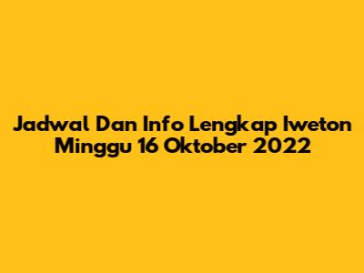 Jadwal Dan Info Lengkap Iweton Minggu 16 Oktober 2022