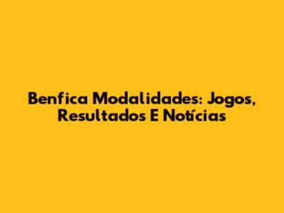 Benfica Modalidades: Jogos, Resultados E Notícias