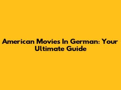 American Movies In German: Your Ultimate Guide
