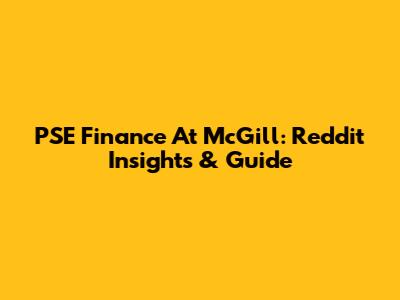 PSE Finance At McGill: Reddit Insights & Guide